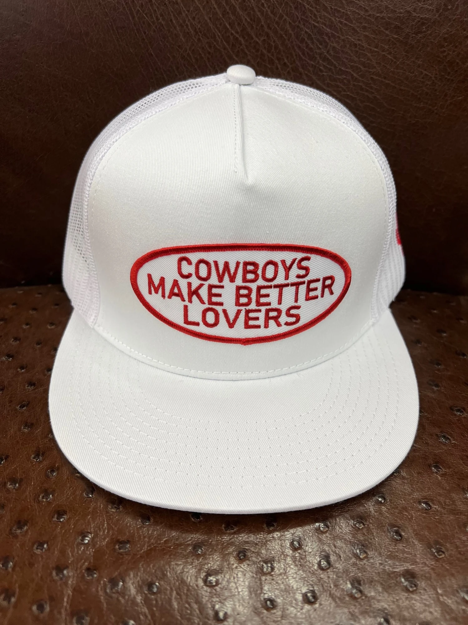 Cactus Alley White 5 Panel “Cowboys Make Better Lovers” Mesh Snapback