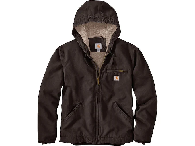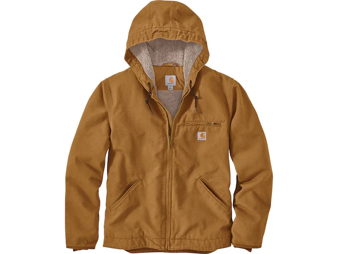 This men’s hooded jacket is built to brave wind, cold, and hard days on the job. It’s made of our heavyweight cotton duck, which is sanded and brushed for softness. It’s made for comfort, with internal rib-knit cuffs and a warm Sherpa lining. Previously known as the Sierra Jacket. Engineered for high warmth in severely cold conditions.
