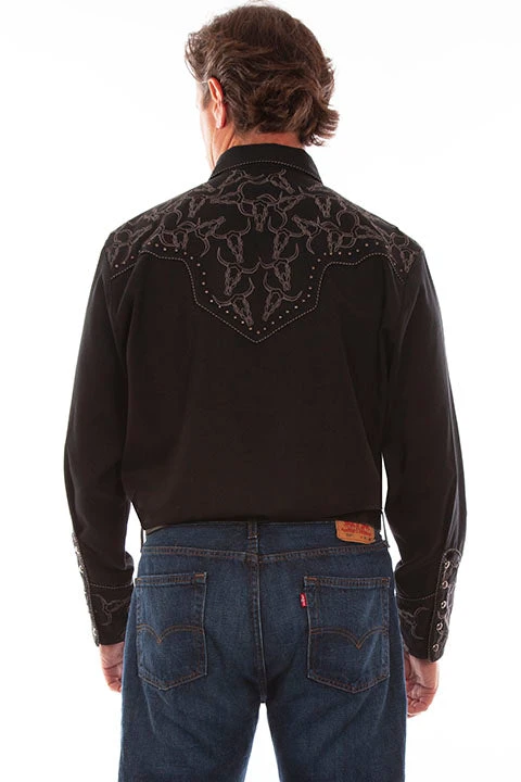 Men’s Scully Black Longhorn Embroidered Shirt – P912