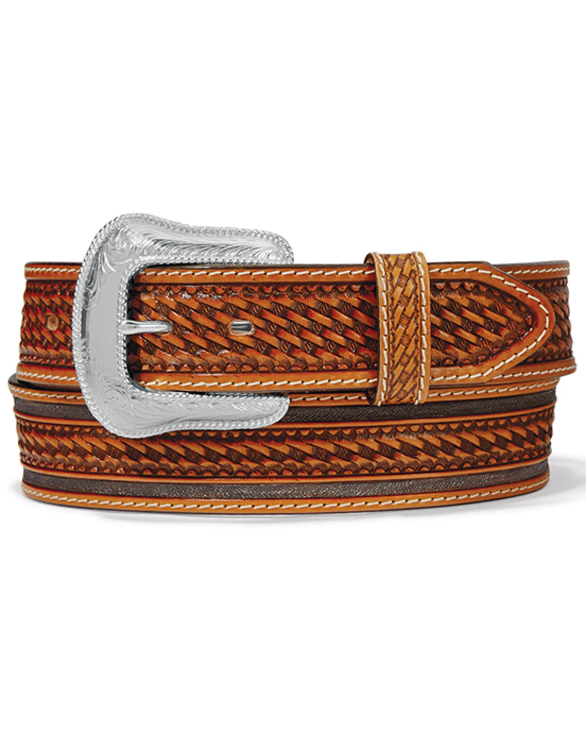 Tony Lama® Men’s Ringo Tan Basketweave Studded Leather Belt.