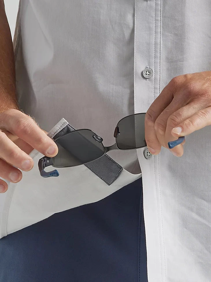 We’re all greater outdoors, and the ATG by Wrangler® men’s asymmetrical zip pocket shirt will get you there. This essential piece of outdoor gear comes with everything you need to take on any terrain with confidence, including a chest flap pocket and zip pocket for essentials, a sunglasses cleaner at the hem, and a vented back yoke to keep you cool. Plus, this men’s shirt is purposefully crafted with UPF 30 to protect you from harmful UV rays and moisture-wicking properties to keep you feeling dry. No matter where the day takes you, this outdoor shirt has your back. Pair it with the ATG® men’s belted utility short and take the summer by storm.