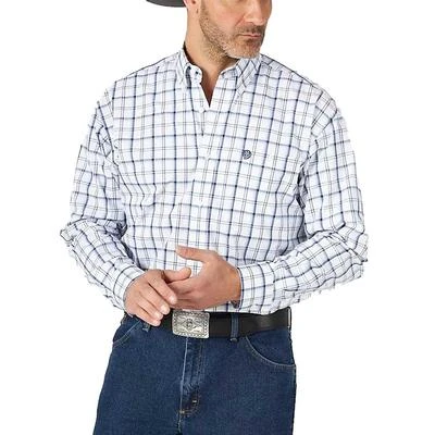 This Wrangler Men’s George Strait Blue & Grey Plaid Button Down, features a classic country feel that only the king of country could inspire!