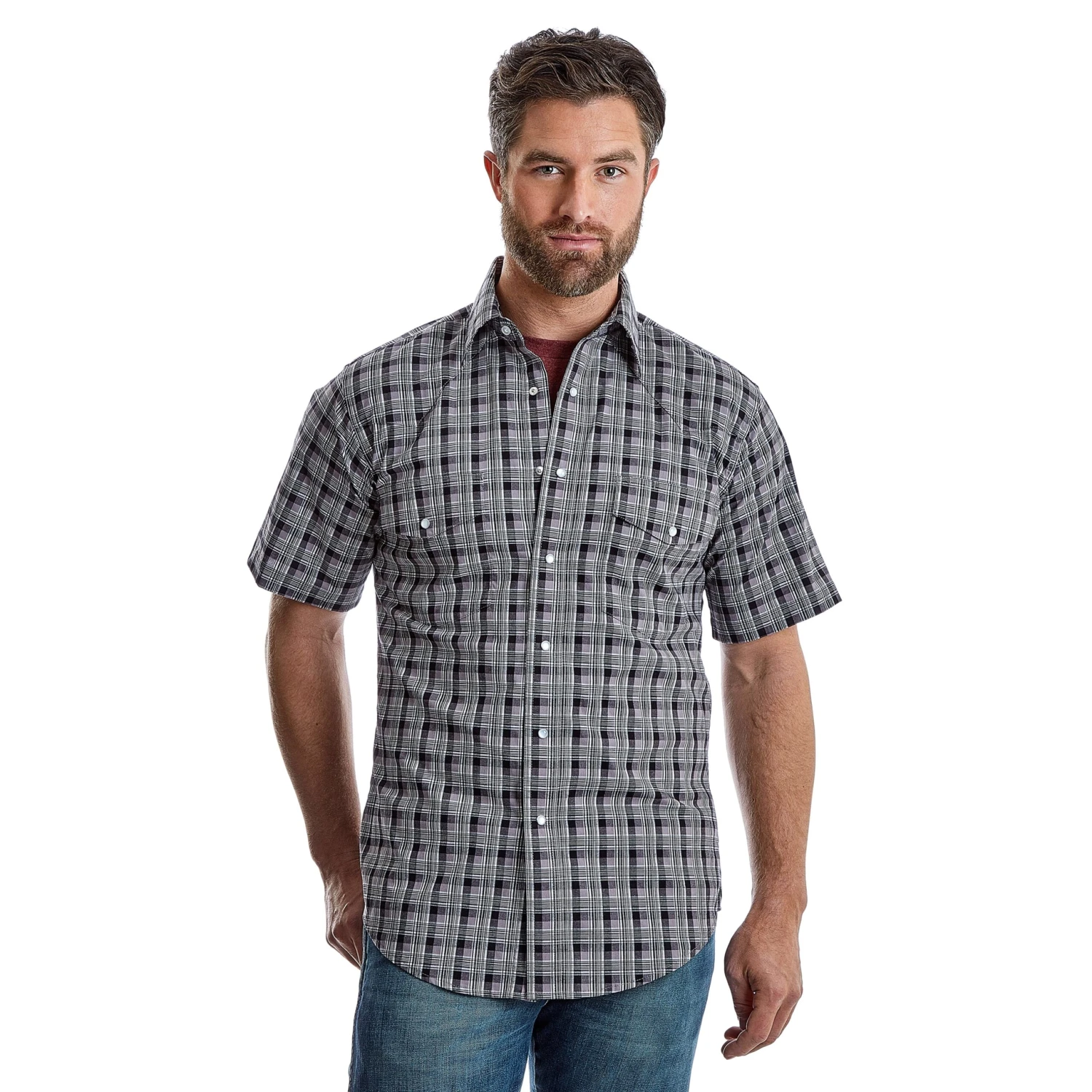Mens Wrangler Wrinkle Resist Short Sleeve Short – Black/Grey