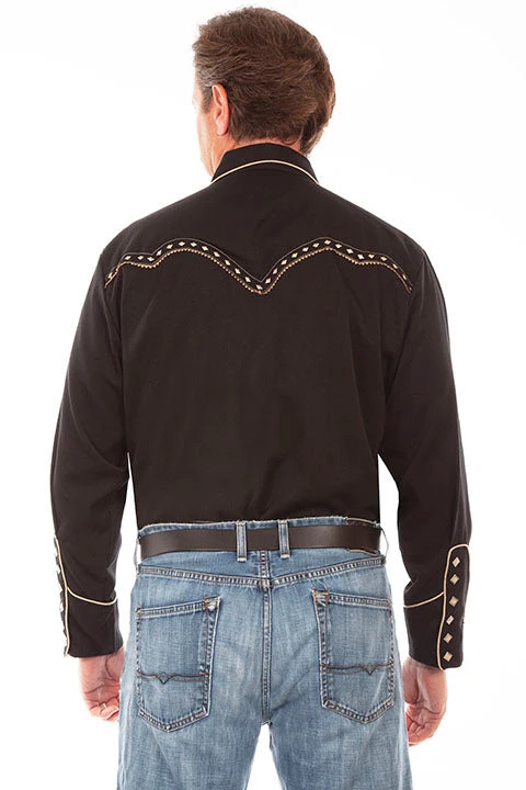 This Scully long sleeve shirt is for the man that likes to make a statement when he goes out. Whether you’re two-stepping in a honky-tonk or simply having a drink at the bar, you will attract the right kind of attention in this striking black Scully shirt with retro piping, pockets and buttons.