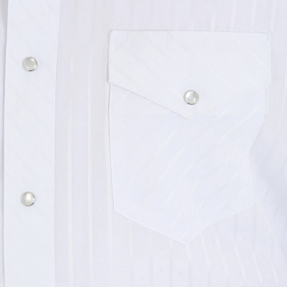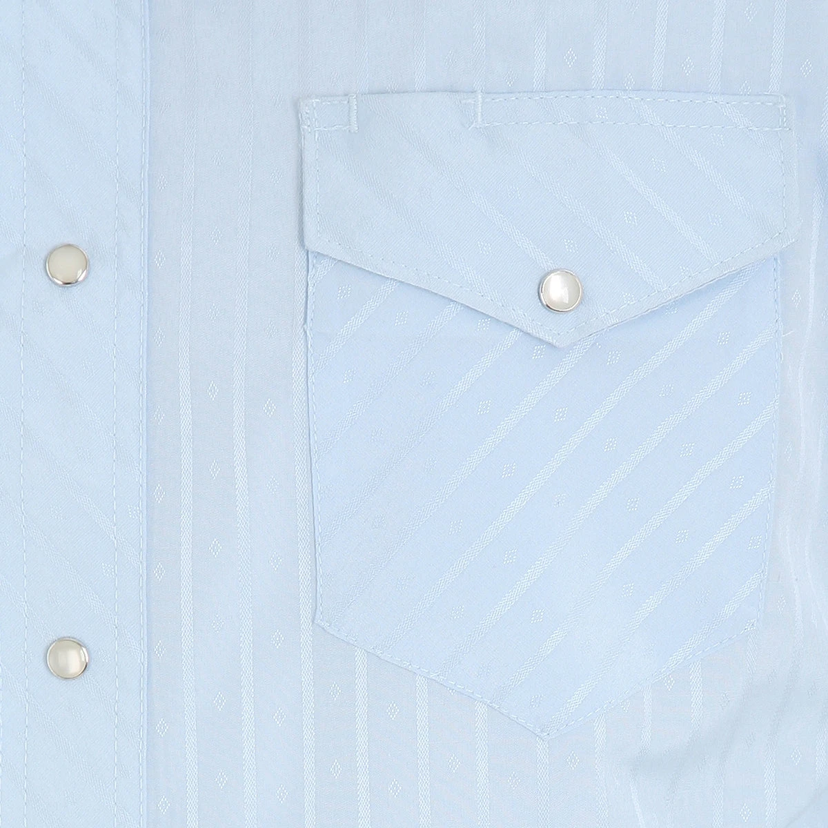It’s a subtle touch, but a stylish one — look closely and you’ll see the tone on tone stripes on this long sleeve shirt. It’s a quiet polish to an authentic Western favorite.